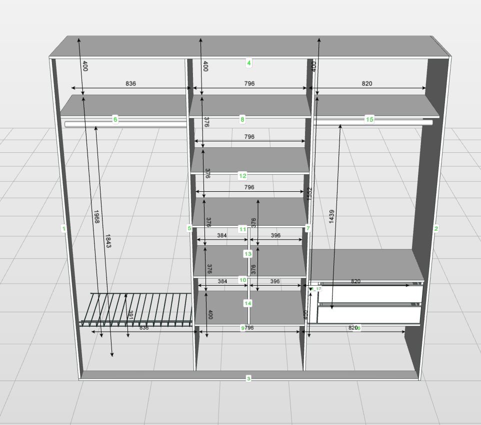 • Фасады выполнены из алюминиевой рамы толщиной 1 мм со вставками ДСП толщиной 10 мм., крашеными стеклами, зеркалами, стеклами с фотопечатью. Широкий выбор оформления: натуральные древесные, матовые однотонные покрытия, а так же имитации бетона и камня.